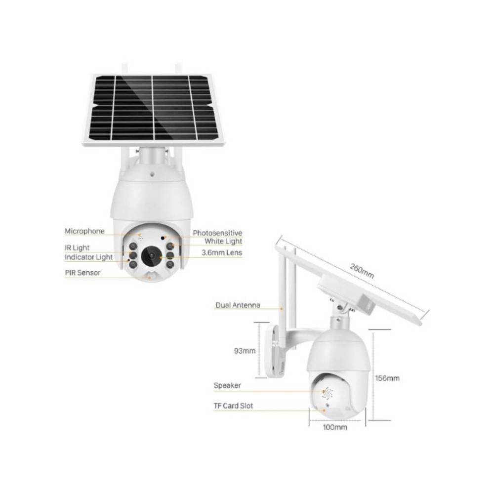 - بطارية مدمجة ووضع توفير ذكي: تستمر بالعمل حتى 15 يومًا في غياب الشمس بتقنية التسجيل عند الحركة فقط.