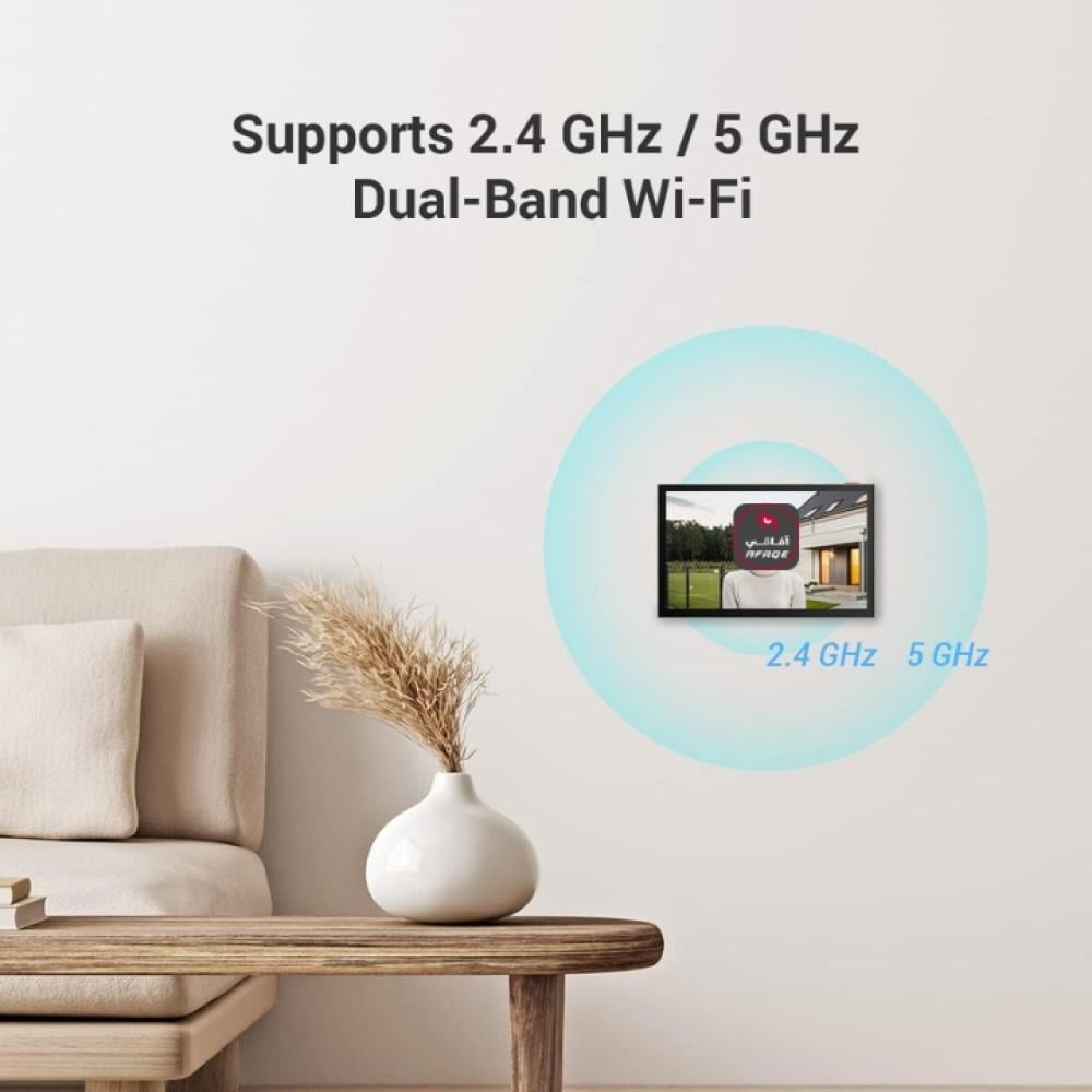 - اتصال Wi-Fi مزدوج النطاق (2.4/5GHz): اتصال أكثر استقرارًا لنقل الفيديو والصوت بجودة عالية وبدون انقطاع.