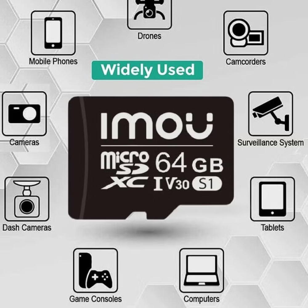 احصل على أداء فائق وسعة موثوقة مع كرت الذاكرة IMOU MicroSD بسعة 64 جيجابايت – مثالي للهاتف، الكاميرا، أجهزة الألعاب، التابلت، أنظمة المراقبة، وغيرها.